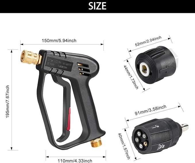 #1. YUET High Pressure Washer Gun Handle with Multi Angle (All in One) Water Nozzle,Cleaner for Car Cleaning Kit(M22 14MM Fitting Hose Connector & 1/4″ Karcher Kärcher Quick Connector) Power Wand 4350 PSI