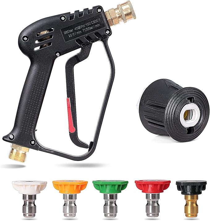 #2. YUET High Pressure Washer Gun Handle with 5 Water Nozzle Tip,Water Wash Cleaner for Car Cleaning Kit(M22 14MM Fitting Hose Connector & 1/4″ Karcher Kärcher Quick Connector) Power Wand 4350 PSI