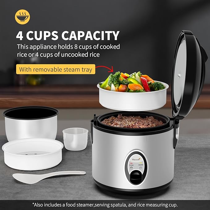 This small rice cooker can switches to keep warm mode automatically once the cooking cycle is completed, which helps you lock the nutrition and keep your food at an edible temperature. Macook rice cooker and steamer can make for a healthy, perfect meal every time.