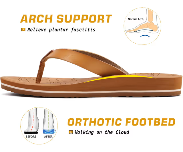 ONCAI Flip Flops Womens Arch Support Yoga Mat Summer Beach Leather Athletic Thong Sandals Woman with Orthotic Plantar Fasciitis Rubber Soles Khaki