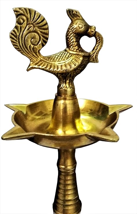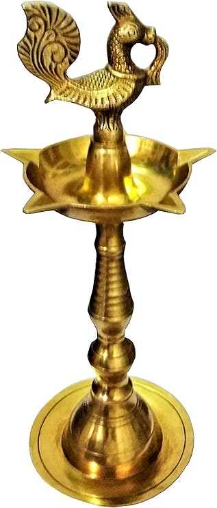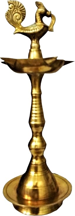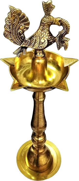 Purpledip Brass Oil Lamp Kuthu Vilakku Diya Peacock Design 12 inches