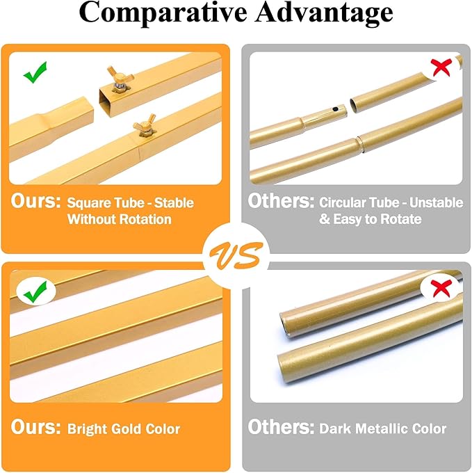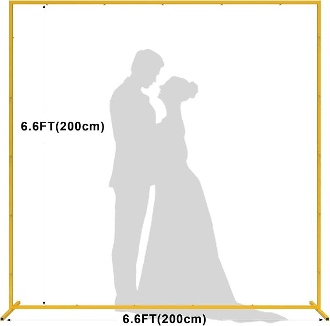 Wedding Arch Backdrop Stand, 6.6×6.6 FT Gold Wedding Arches for Ceremony Square Metal Balloon Arch Stand Garden Arbor Frame for Wedding Birthday Party Baby Shower Photo Booth Background Decoration